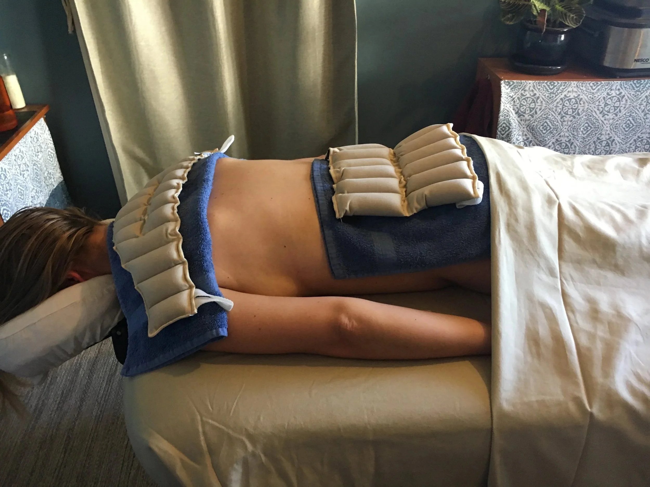 Smooth, flat, heated stones are used to warm the tissues using long, relaxing strokes.